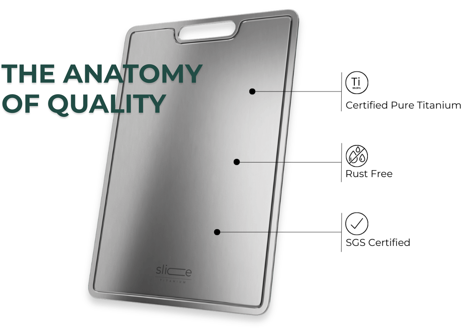 At Slice Kitchenware, we grew tired of disposable boards that become unsanitary over time. Our mission was clear: apply titanium engineering to create a tool that blends health, craftsmanship, and eternal durability. It’s not just a utensil; it’s an investment in your well-being.